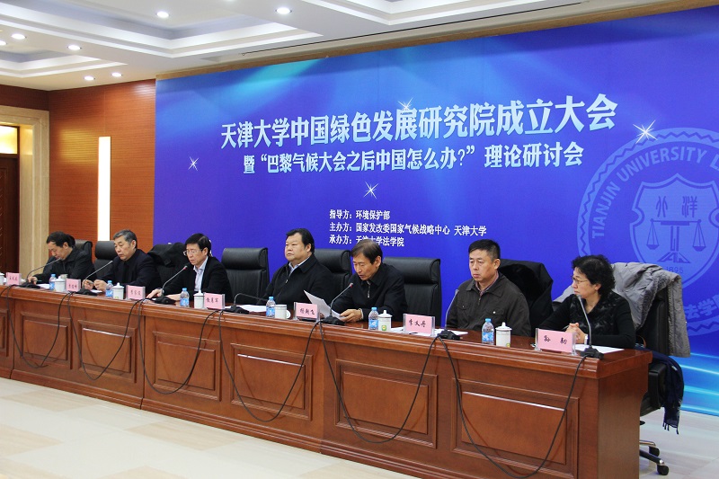 本站讯(通讯员 郭金石)12月27日,由环境保护部指导、由国家发改委国家气候战略中心和天津大学联合主办的“天津大学中国绿色发展研究院成立大会暨巴黎气候大会之后中国怎么办?”理论研讨会在天津大学卫津路校区成功举行。