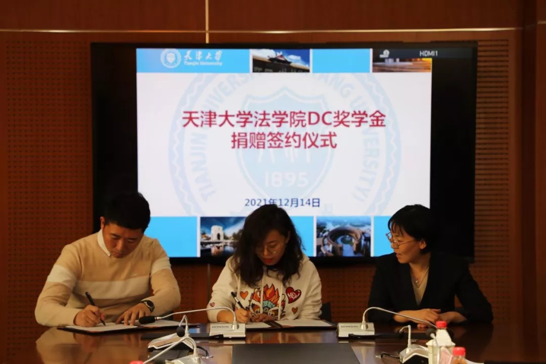 (通讯员 郭贵雨 摄影 罗芷瑜)2021年12月14日,天津大学法学院DC奖学金捐赠签约仪式在法学院正式举行。出席仪式的有:法学院孙佑海院长,法学院2003级校友、天津一汽丰田汽车有限公司法务主管李婷,天津一汽丰田汽车有限公司保卫主管姜维肖先生,天津大学校友与基金事务处潘晓睿副处长、任杰老师和唐克扬老师。捐赠仪式由法学院党委副书记、副院长张昊主持。