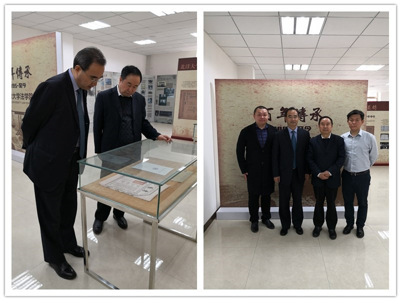 在孙佑海院长、李明副院长、吕斯轩老师的陪同下,黄进校长参观了法学院的院史馆。