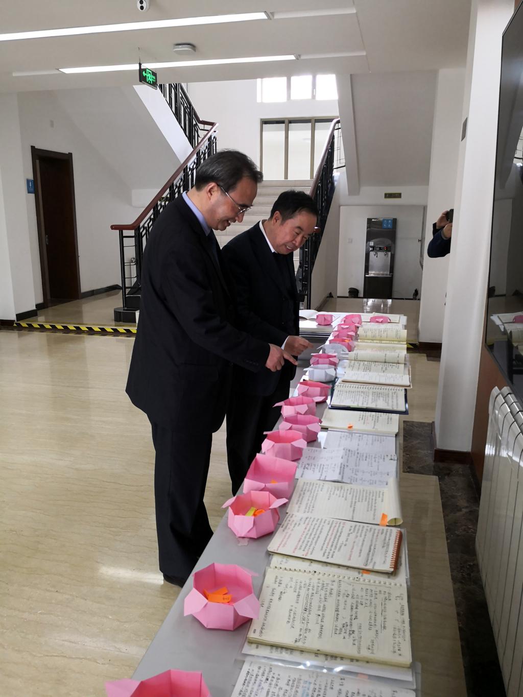 会前,黄进校长和孙佑海院长查看学生们的优秀笔记评选作品,并给予高度评价。