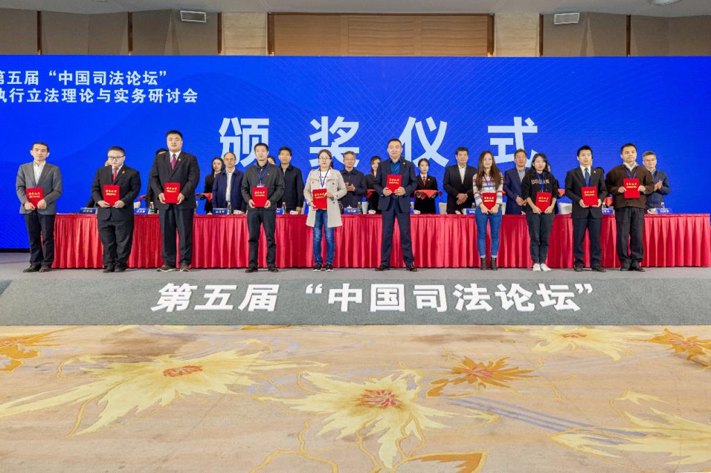 之后,苏泽林、董治良、曲福田、周继业、夏道虎、李成玉、赵晋山、孙道林等领导为第五届“中国司法论坛”征文获奖者颁奖。中国行为法学会司法分会副会长兼秘书长、天津大学法学院院长孙佑海宣读了中国行为法学会关于设立司法分会南京基地的设立决议。
