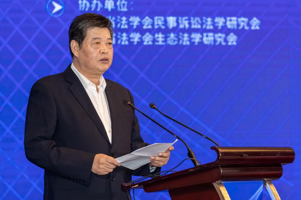 中国行为法学会副会长兼司法分会会长苏泽林致辞。他首先指出在党的十九届四中全会胜利召开,通过了具有历史性意义的《中共中央关于坚持和完善中国特色社会主义制度、推进国家治理体系和治理能力现代化若干重大问题的决定》之际,本次研讨会共同探讨强制执行立法理论与实务研讨问题,意义深远重大。强制执行是司法程序的关键环节,自最高人民法院2016年3月提出“用两到三年时间基本解决执行难问题”以来,中国各级人民法院攻坚克难、共同努力,在构建综合治理执行难工作格局、推进网络查控系统建设、加强联合惩戒体系建设、深化执行体制机制改革、强化执行公开与执行管理等工作上取得显著成效,实现了执行模式的重大变革、执行质效的较大提升、执行环境的明显改善。中国行为法学会司法分会高度重视强制执行程序的规范化与现代化,注重总结我国强制执行程序的问题与经验,着力研讨强制执行程序的理论与实务,为建设具有中国特色的强制执行制度、机制和模式,积极整合研究力量、形成研究合力。