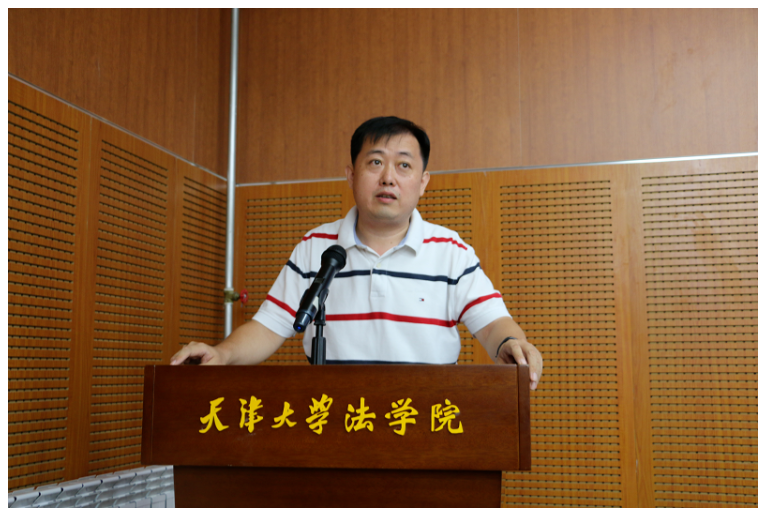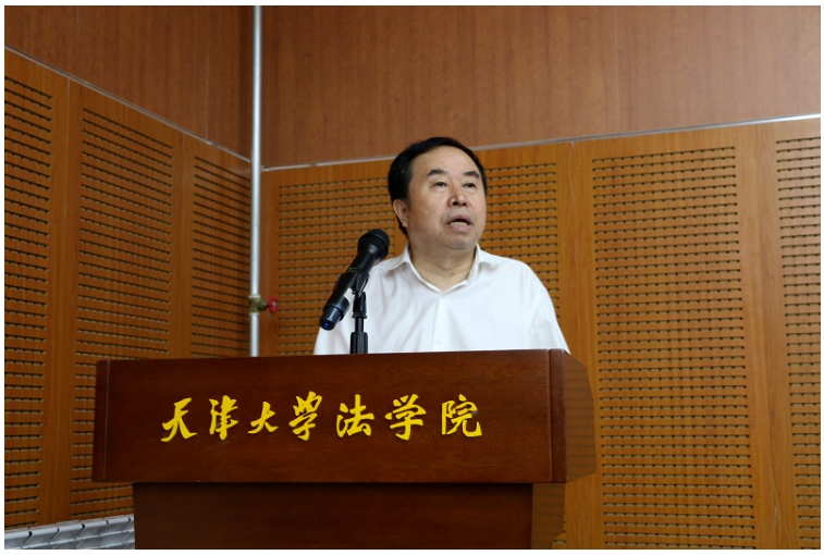 孙佑海院长讲话。他指出,天津大学法学院五年来始终以复兴北洋法学为己任,遵循“高起点、入主流、有特色、国际化”的办学方针,严守“崇法厚德、致公天下”的院训,攻坚克难、励精图治,取得了一系列成绩,这与法学院全体师生的共同努力是分不开的。孙院长以北洋法科杰出校友张太雷等为例,介绍他们的生平事迹,借此对毕业生提出向杰出校友学习的四个要求,即学贯中西、才华出众、学以致用、报效国家。孙院长又从工作和生活层面嘱托同学们:一、政治成熟,永做党的人;二、专业出众,成为组织离不开的人;三、遵纪守法,不辜负党组织和家庭的期望。孙院长最后勉励各位毕业生以习近平新时代中国特色社会主义思想武装头脑,毕业后在自己的工作岗位上全力展现天大法学人的风采,为国家和社会建设作出自己的最大贡献。