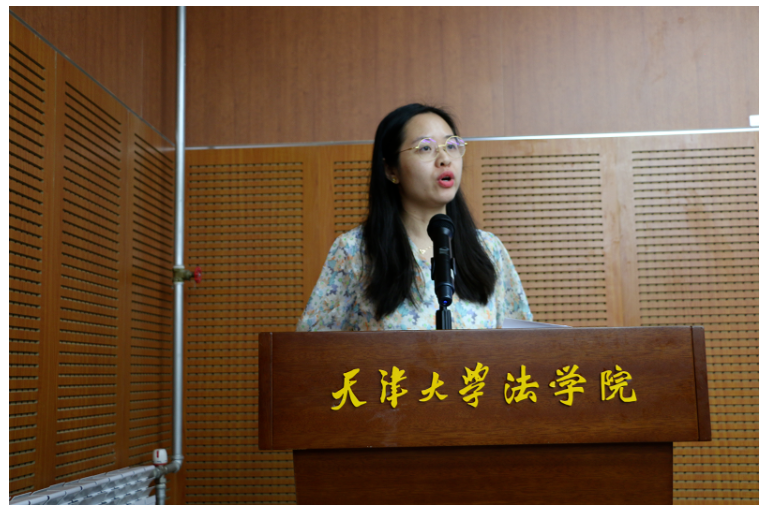 辅导员张斯琦发言。她代表学工办和团委表达了对2020届毕业生顺利毕业的祝福,以及对同学们即将离开母校的留恋与不舍,希望大家在将来的日子里一切顺利,平安健康。张斯琦老师为毕业生送上三个叮咛:第一,希望同学们热爱祖国;第二,希望同学们热爱天大、热爱天大法学院;第三,希望同学们热爱家人、热爱自己。最后,她祝愿大家一帆风顺、前程似锦,常回天大“自己的家”看看。