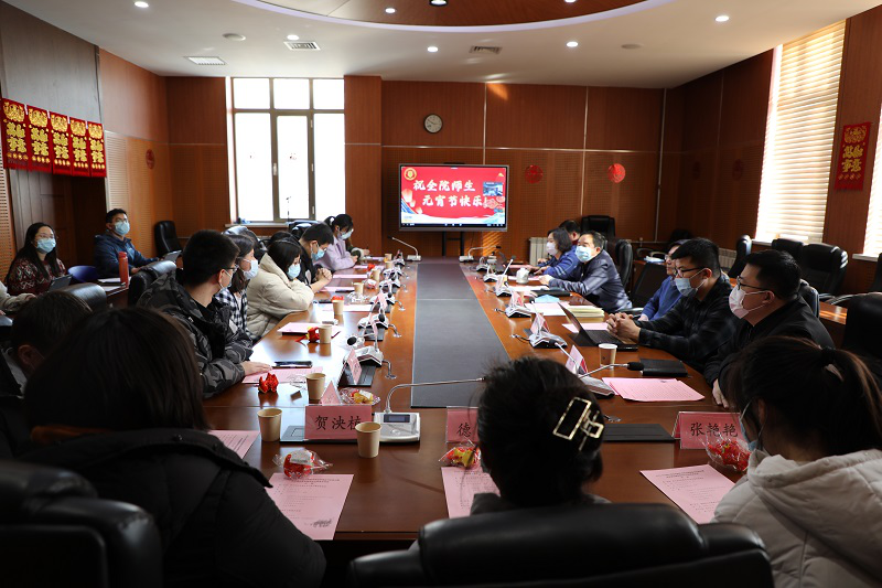 师生们交流分享了学习体会。同学们回忆了寒假以来留校生活的点点滴滴:除夕时和院领导、辅导员们包饺子看春晚共庆新年,在学院自习时来自门卫大叔的无言关心,出入宿舍时宿管阿姨测温的一丝不苟,学工部老师对宿舍供暖不足的关注问询,食堂阿姨端来的一碗免费炸酱面,学校安排同学返乡时的细心周到……正是天津市委市政府和学校各部门、学院对留守学生们无微不至的关怀,使自己度过了一个特别而又温暖的寒假。各种丰富多彩的活动使假期不再枯燥,各部门的辛勤工作为学生们的留校生活提供了坚实保障。同学们表示,绝不负鸿忠书记的期望,把论文写好,把学问做好,坚决配合学校的防疫安排,积极参加抗疫斗争的志愿活动。学院党政办公室主任于艳春老师、团委副书记张斯琦老师、辅导员付常辉老师感谢同学们和家长们支持理解和配合学校的各项政策;感谢领导和老师们的辛勤付出,院领导们不分昼夜两班值守,老师们积极参加校门值守、志愿服务,组织爱心车队送学生返乡……各种点点滴滴汇聚起了抗疫暖流,凝聚起战疫的强大合力。杨健副院长说,开学在即,希望同学们保持良好的学习状态,祝愿新的一年,同学们能够有新的开始,万事皆可期。蓝蓝副院长说,疫情终将过去,但是希望大家留下在抗疫过程中收获的感悟,在今后面临相似困境的时候多一份理解和包容。张昊副书记指出此次抗疫斗争中,留校的同学们始终识大体、顾大局,积极踊跃参加各项志愿服务,用实际行动践行听党话、跟党走的誓言,向党和人民交出了一份合格的答卷。