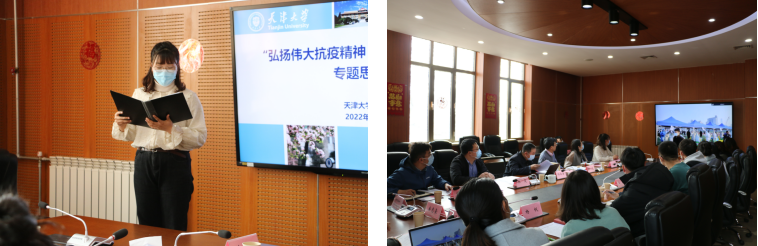 (通讯员 尹卓扬)3月9日,天津大学法学院在330会议室开展“弘扬伟大抗疫精神 在抗疫中磨炼成长”专题思政课。法学院院长孙佑海,党委书记杨欢,学工办副主任、团委副书记张斯琦,本科生辅导员付常辉和学生代表等参加本次活动。学院党委副书记、副院长张昊主持活动。