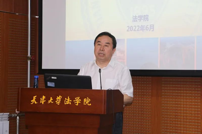 法学院院长孙佑海教授讲话。他从学科建设、人才培养、科学研究、人才队伍建设、国际化建设、学生工作、党建工作、行政管理工作、生物安全战略研究中心等方面对2022年上半年的工作进行了总结,并对下半年的重点工作进行了安排。孙佑海院长对全体教职员工提出三点要求:一是大力加强学生思想政治教育,同时各位老师要率先垂范;二是本着对学生负责的态度努力提升教学质量,增加学生的获得感;三是将不断提升个人能力与发挥团队精神相结合,提升创新发展新高度。孙佑海院长希望全体教职工始终牢记初心使命,迎盛会,铸忠诚,强担当,创业绩,奋力夺取一流法学院建设的新胜利,以实际行动迎接党的二十大胜利召开,为实现中华民族伟大复兴的中国梦作出新的更大贡献。