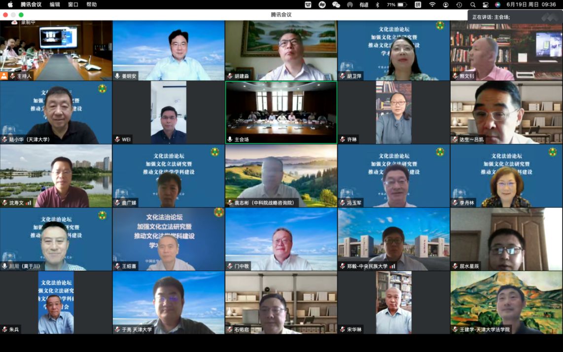 (通讯员:蒋剑、王宇)2022年6月19日,“文化法治论坛:加强文化立法研究暨推动文化法学学科建设学术研讨会”在天津大学法学院隆重举行。会议开幕式由天津大学法学院党委书记杨欢主持,天津大学法学院院长孙佑海首先致欢迎辞。中国法学会副会长、中共中央党校(国家行政学院)卓泽渊教授,中国法学会立法学研究会副会长、中央依法治国办秘书局局长刘长春,天津大学人文社科处处长、文科建设办公室主任张俊艳在开幕式上分别致辞。