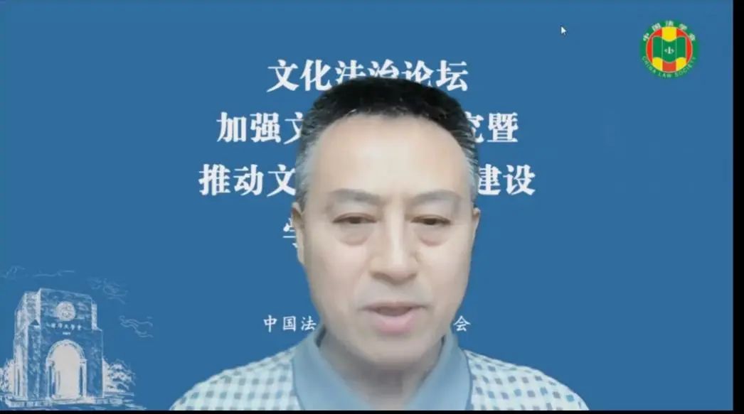 中国人民大学法学院教授、中国法学会立法学研究会常务副会长兼秘书长冯玉军就新时代“学习习近平法治思想,以法治保障文化繁荣”进行总结。他指出,习近平总书记关于文化建设的重要论述,是我们新时代推进文化建设,促进文化大繁荣大发展,指导文化实践的重要理论,也是我们下一步推进文化法制建设、文化立法以及文化法治系列丛书出版的重要指导。