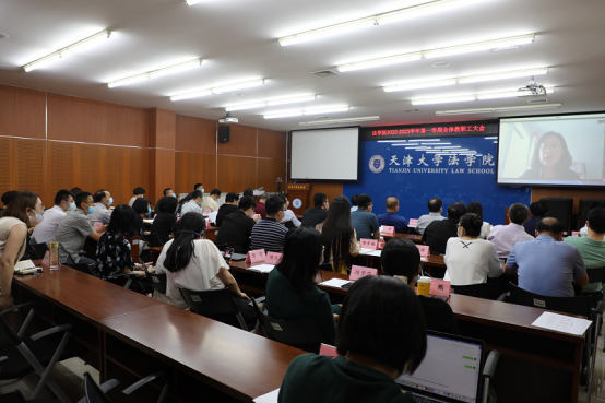 孙佑海院长介绍了学院暑期的工作进展,具体包括,人才培养方面开展2022级新生报到和入学教育工作,新疆高考招生圆满完成,组织召开第一届研究生夏令营,研究生培养文件修订,杨宁老师获得第二届全国教师教学创新大赛全国赛区三等奖,教研组组织教学研讨,学生科研论文获奖等;科研方面发表论文23篇,出版著作2部,新获批17项科研项目,王小钢教授荣获2022年“中达环境法青年学者奖”,多位教师积极开展社会服务等;人才队伍建设方面,引进4位新教师,开展新教师培训,举办北洋青年科学家论坛等。接下来,孙院长布置了学院2022年下半年在学科建设、人才培养、科学研究、人才队伍建设、国际化建设、学生工作、校友工作、高端培训、党的建设、生物安全战略研究中心方面的重点工作。孙院长对全院教师提出四点希望:一是要有契约精神;二是熟悉两个专业,拓宽学术视野;三是要有战略思维;四是希望大家热心公益,做情操高尚、有利于人民的人。