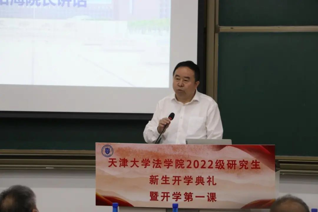 天津大学法学院2022级研究生新生开学典礼在天津大学校歌旋律中落下帷幕。开学典礼结束后,法学院院长孙佑海为新生主讲开学第一课。他指出,要成为一名合格的天大研究生,不仅要提高自身能力,发愤图强,增强自我定力,还要遵守法学院的科研管理和论文要求,熟悉掌握研究生的成长规律。要保持自我反省和激励的习惯,积极主动参与社会各界和法学院举办的论坛、征文等活动,以谦虚谨慎的态度面对未来的学习生活。他祝愿新生在新的阶段能够向北洋法科优秀的前辈学习,在实践中锻造意志品质,与天大法学院共同创造辉煌的明天。