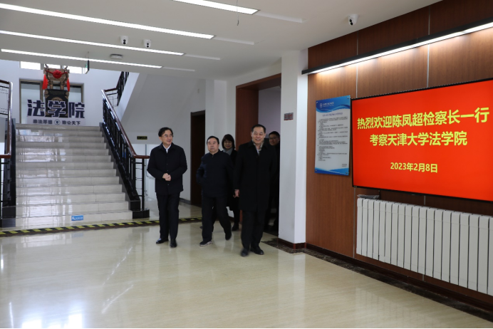 2月8日,天津市人民检察院党组书记、检察长陈凤超一行到天津大学法学院调研考察。学校党委书记杨贤金、副书记雷鸣、副校长明东,法学院院长孙佑海、党委书记李明陪同参观并出席座谈。