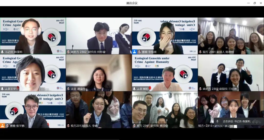 在4月16日下午结束的2023年国际刑事法院中文模拟法庭竞赛(以下简称ICC中文赛)中,天津大学法学院代表队经过两天激烈的线上庭辩,获得团体赛全国二等奖(排位第三)的荣誉。2019级本科生李晴同学获得“最佳检方律师庭辩奖”第二名和“检方律师十佳辩手”的个人荣誉。