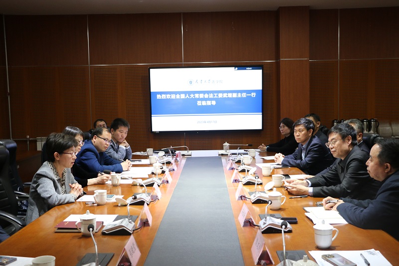 2023年4月17日,第十四届全国人大常委会委员、全国人大宪法和法律委员会委员、全国人民代表大会常务委员会法制工作委员会副主任武增,全国人大常委会法工委宪法室副主任刘玉涛,全国人大常委会法工委办公室人事处处长、天津市和平区小白楼街道党工委副书记(挂职)张晓莹,全国人大常委会法工委国家法室副处长董立新,全国人大常委会法工委国家法室干部唐亚,全国人大常委会法工委国家法室干部韩屹青,天津市人大法制委员会主任委员、天津市人大常委会法工委主任王泽庆,天津市人大常委会法工委二级巡视员李彤等一行莅临天津大学法学院调研。