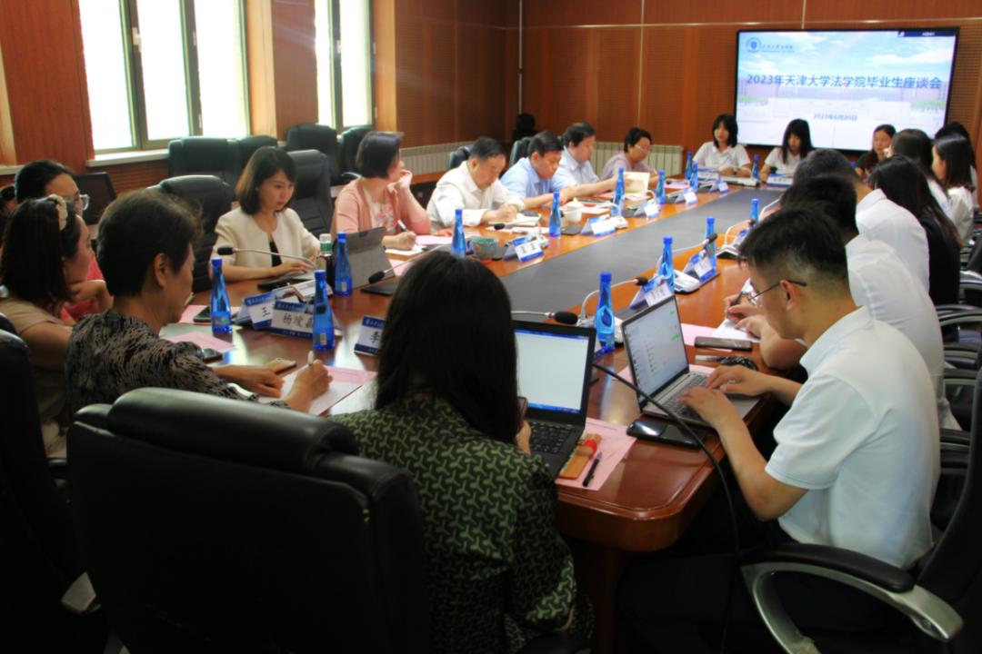 (通讯员:尹卓扬 摄影:代一然)6月20日下午,法学院2023年毕业生座谈会于学院330会议室举行。法学院院长孙佑海,党委书记李明,副院长蓝蓝,副院长杨健,党政办公室主任张丹,教务员李萍、杨瑷嘉,科研秘书王文杰,学工办副主任、团委副书记张斯琦,辅导员付常辉出席座谈会,来自学院全日制、非全日制的10名本硕毕业生代表参加座谈会。法学院党委副书记杨漫路主持会议。