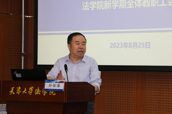 孙佑海院长首先介绍了学院暑期所取得的工作进展,包括举办第二期研究生招生夏令营、开展鲅鱼圈暑期社会实践、科研成果产出和科研项目获批、涉外律师培训举办等。之后,孙院长介绍了新学期的重点工作。孙院长强调,全体教职员工要一手抓发展,一手抓安全。一方面,学院要在发展上做出新的努力,产出更多的教学和科研成果,另一方面,老师们要时刻严守党纪国法和教师职业行为准则,不断提升意识形态鉴别力,防范化解舆情风险;要防范党风廉政风险,合理使用科研经费,合法从事社会兼职;要充分发挥党团建设、学生工作和行政管理的保障作用。