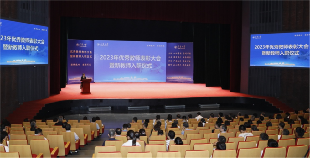 (通讯员 杨健)2023年9月11日,天津大学在北洋园校区求实会堂召开了2023年优秀教师表彰大会暨新教师入职仪式。本次活动旨在表彰在教学与科研工作中表现突出的优秀教师,激发广大教师投身教育事业,为推动学校教育事业的进一步发展做出贡献,同时激发新入职教师的工作热情,努力提升教学质量,践行立德树人的根本任务。大会举行了隆重的首届求是导师和求是团队颁奖仪式。