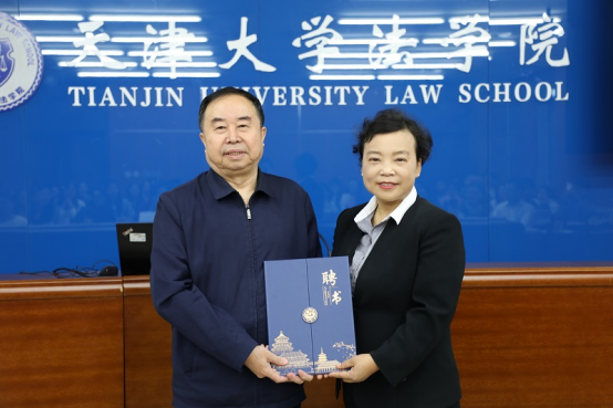 孙佑海院长向王秀梅教授颁发兼职教授聘书。