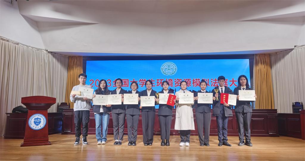 在2023年11月18日-19日举行的2023全国大学生环境资源模拟法庭大赛决赛阶段比赛中,天津大学代表队夺得全国冠军。队长陈哲荣获赛事“最佳选手奖”(仅2人)。本届比赛的参赛队员有天津大学法学院本科生陈哲、严梓涵、阳欣茹、孙华岭、张馨丹和樊嘉源,法学院研究生刘天预、张雯、王泽天、鲁玉琦。