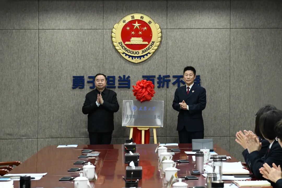 孙佑海、张云琦代表双方签订了《检校共建》协议,并为检校共建基地揭牌。