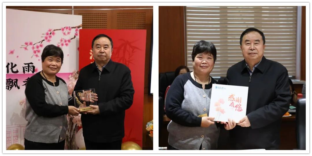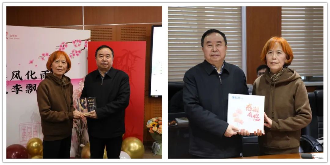 孙佑海院长感谢第三教研组组长李士萍老师和第五教研组薛春丽老师数十年来对学院事业发展的辛勤付出,祝愿两位老师身体健康,欢迎两位老师继续关注学院的发展动态,随时对学院工作提出意见建议。