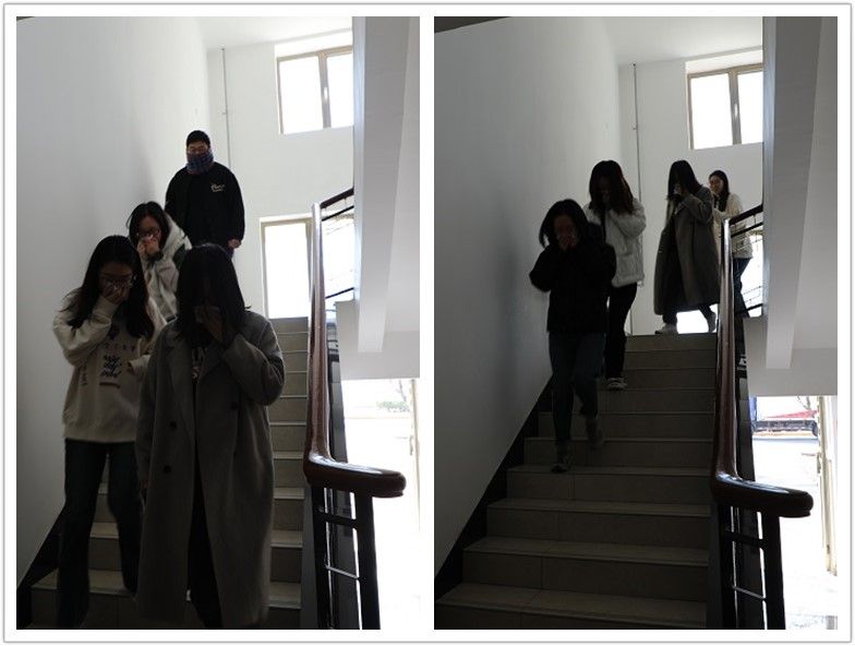 活动开始后,参加演练师生在工作人员的组织下,按照标准流程和各自实际情况,迅速有序的完成了应急疏散。