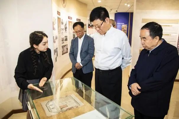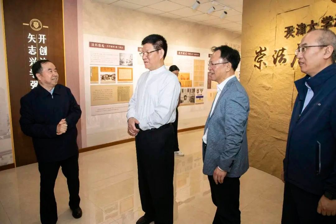 随后,王其江一行到法学院调研法学会基层服务站点建设工作,并前往法学院院史馆了解学院发展历史和办学情况。孙佑海院长介绍了北洋法科所培养的中国共产党早期重要领导人张太雷,以及法学大家王宠惠、海牙国际法院著名法官徐谟等中国最早一批涉外法律人才,并围绕学院复建后的学科建设、科研项目、社会服务等方面进行汇报。王其江表示,天津大学法学院具有深厚的历史底蕴,近年来在人才培养、学术研究、师资培育、智库建设等方面取得丰硕成果,希望学院积极响应党和国家政策,紧跟社会发展需求,不断培养出德才兼备的高素质法治人才,为推进全面依法治国、建设社会主义法治国家贡献更大力量。