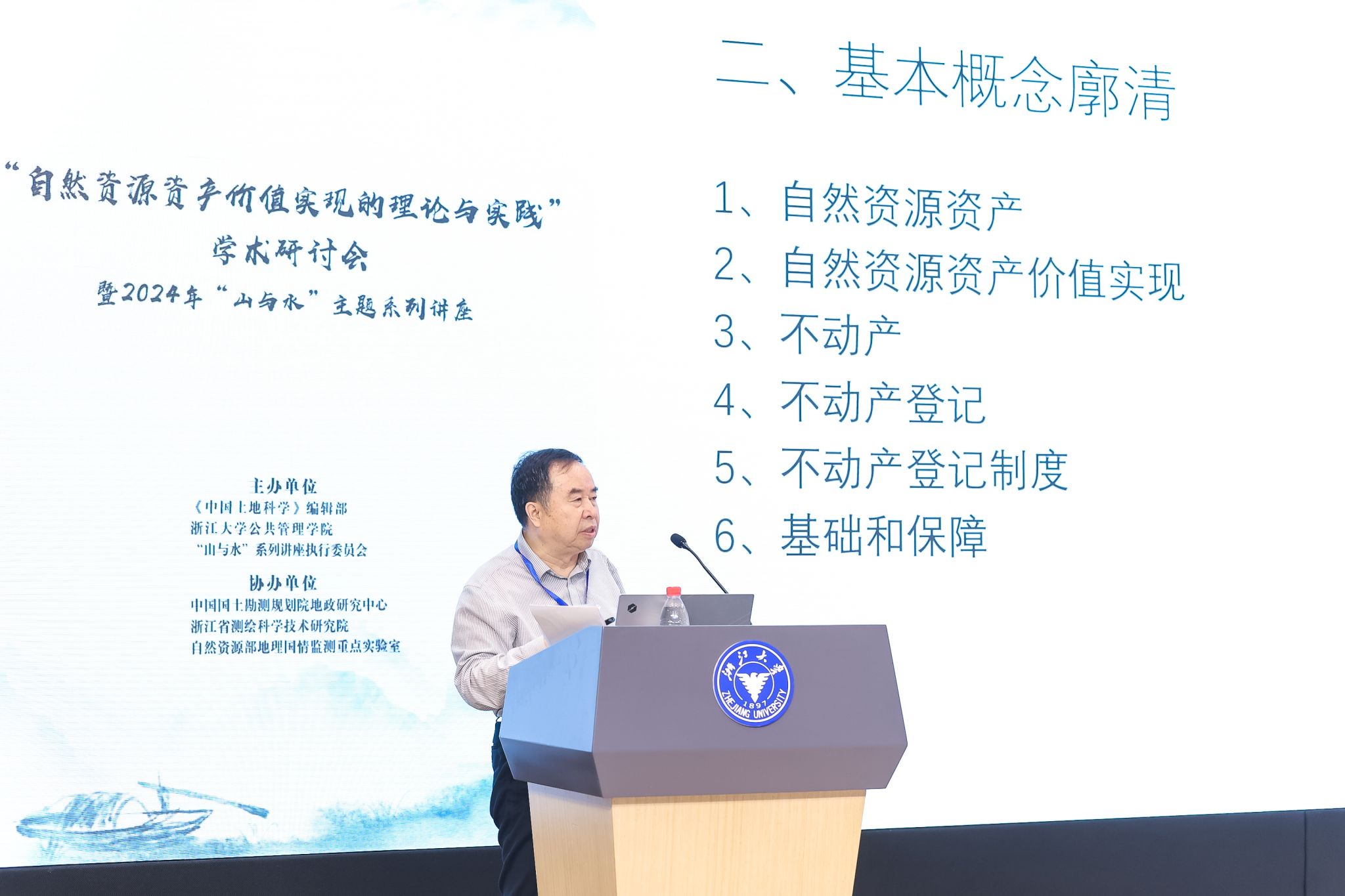 2024年5月26日,由《中国土地科学》编辑部、浙江大学公共管理学院、“山与水”系列讲座执行委员会主办,中国国土勘测规划院地政研究中心、浙江省测绘科学技术研究院、自然资源部地理国情监测重点实验室协办的“自然资源资产价值实现的理论与实践”学术研讨会暨2024年“山与水”主题系列讲座在浙江杭州成功举办。