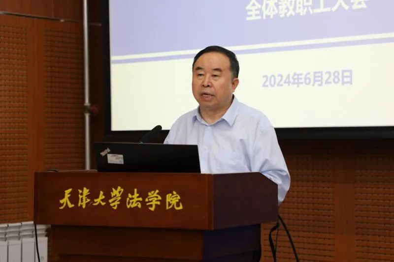 (通讯员 郭金石 摄影 郭金石)2024年6月28日下午,天大法学院在332会议室召开2023-2024学年第二学期全体教职工大会。