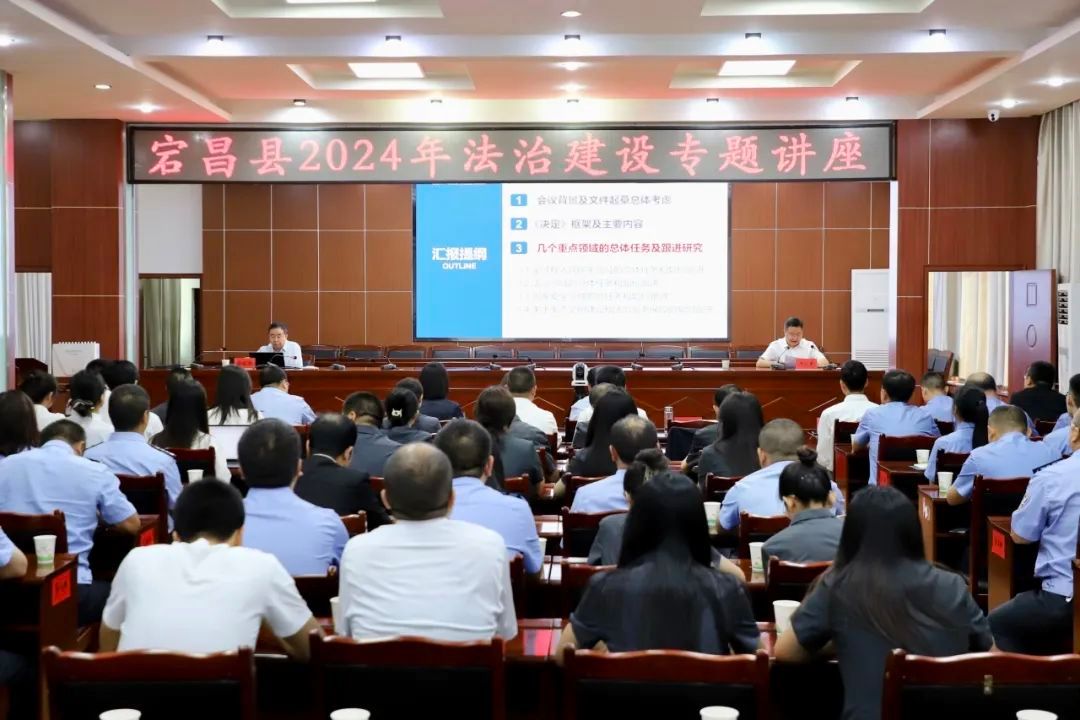 签约仪式结束后,孙佑海为宕昌县政法干警代表讲授了题为《全面深化改革对法治的新要求和及时跟进研究》的专题讲座,围绕党的二十届三中全会通过的《中共中央关于进一步全面深化改革 推进中国式现代化的决定》,从党的二十届三中全会召开的背景、决定的框架和主要内容,以及与政法工作高度关联的全过程人民民主、法治、国家安全、生态文明建设四个重点领域的总体任务及如何跟进,集中阐释了今后法学教学研究和政法工作的努力重点和方向。