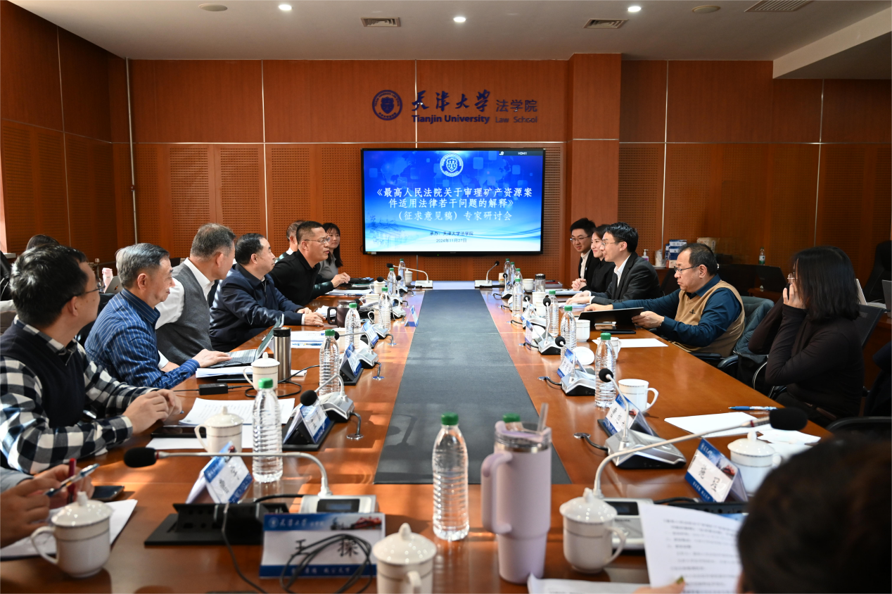 (通讯员 于晶云 摄影 刘志和 周一)2024年11月27日上午,由最高人民法院环境资源审判庭主办、天津大学法学院和天津大学中国绿色发展研究院承办的《最高人民法院关于审理矿产资源案件适用法律若干问题的解释》(征求意见稿)专家研讨会成功召开。最高人民法院环境资源审判庭副庭长李相波,最高人民法院环境资源审判庭二级高级法官贾清林,最高人民法院环境资源审判庭二级高级法官助理刘牧晗,最高人民法院环境资源审判庭书记员王雅淇;天津大学法学院院长、天津大学中国绿色发展研究院执行院长孙佑海教授,自然资源部不动产登记中心副主任李炜研究员,中国政法大学民商经济法学院王灿发教授,黑龙江大学法学院董玉庭教授,中国地质大学(武汉)公共管理学院黄德林教授,中国地质大学(北京)经济管理学院孟磊教授,内蒙古大学法学院曹宇副教授,北京市京师律师事务所矿产资源部主任曹旭升律师,内蒙古鄂尔多斯律师事务所刘佳律师,天津大学法学院教授、天津大学中国绿色发展研究院副院长王小钢,天津大学法学院院长助理田亦尧副教授,天津大学法学院施珵副教授,天津大学法学院杨欣讲师,天津大学法学院王操讲师,中国政法大学民商经济法学院博士研究生徐哲,以及天津大学和内蒙古大学的博士研究生和硕士研究生等参加会议。