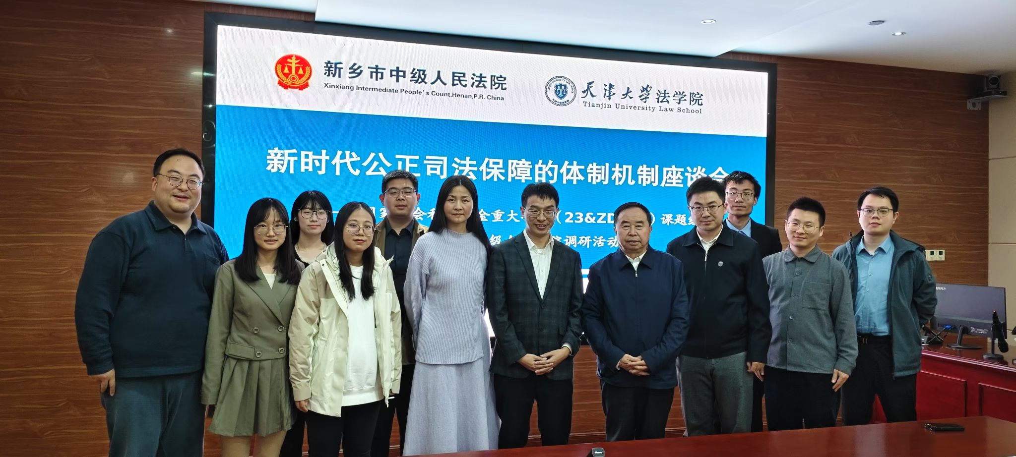 (通讯员 摄影 王操)2024年11月23-24日,国家社会科学基金重大项目“新时代能动司法问题研究”(23&ZD163)首席专家、天津大学法学院院长孙佑海教授率课题组成员天津大学法学院王小钢教授、陈学敏副教授、田亦尧副教授、王操老师,天津商业大学法学院孙淑芬老师、南阳师范大学法学院刘东岳老师、辽宁大学纪检监察学院王甜甜老师,以及博士研究生赵燊、李佩哲、徐哲、刘启源等一行十余人,前往河南省新乡市中级人民法院及下辖基层人民法院考察调研。