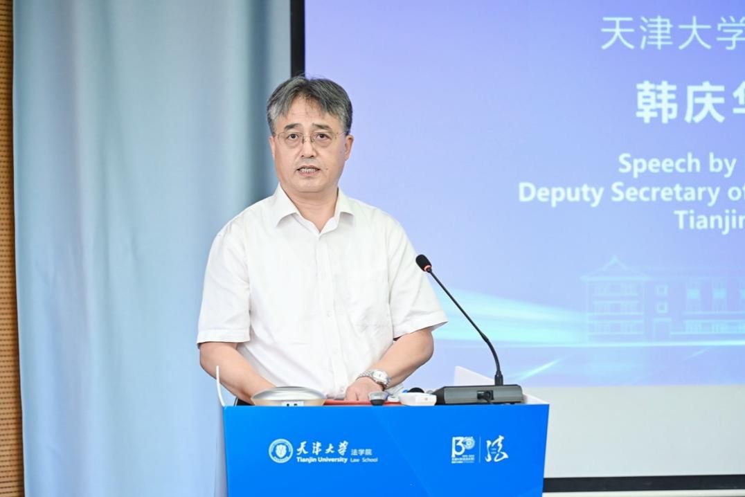 天津大学党委副书记韩庆华致辞。他指出天津大学始终致力于服务国家战略需求,践行兴学强国使命,推动绿色发展与生态文明建设,天大法学学科始终坚持为国家和地方的气候政策与立法提供智力支撑,助力构建完善的气候治理法律体系。希望通过此次论坛,激发更多创新思维,凝聚更多合作力量,共同推动全球气候变化应对与绿色发展的进程。