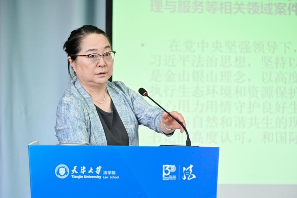 最高人民法院环境资源审判庭原庭长刘竹梅作题为《气候变化与司法应对》的主旨发言。她指出环境司法是生态环境治理体系中不可或缺的部分,我国已经构建了中国特色环境资源审判机构体系,应高度重视案例示范引领作用,积极探索创新审判方式,充分发挥环境司法对发展方式绿色低碳转型、生态系统保护和修复、积极推进碳达峰碳中和的保障功能。