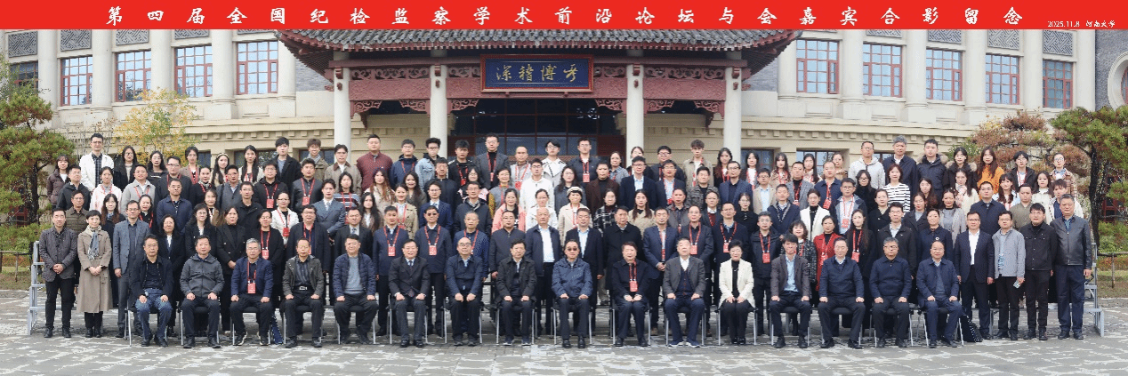 2025年11月8日,第四届全国纪检监察学术前沿论坛在河南大学郑州龙子湖校区成功举行。该论坛由天津大学纪检监察学院联合湘潭大学纪检监察研究院、山东大学纪检监察学院、贵州民族大学党内法规研究中心、河南大学纪检监察学院共同主办,本次论坛由河南大学纪检监察学院、河南大学法学院承办,北京广盛(郑州)律师事务所协办。来自中国人民大学、武汉大学、吉林大学、山东大学、厦门大学、天津大学、中国政法大学、湘潭大学、中共中央党校(国家行政学院)、东南大学、华东政法大学、西南政法大学、西北政法大学、中南财经政法大学、郑州大学等高校和科研机构,和河南省纪委监委、河南省纪检监察协会、河南省教育厅等实务部门,以及《政法论坛》《河南社会科学》《党内法规研究》等刊物的200余位专家学者、实务工作者和河南大学师生齐聚一堂,参与本次会议。天津大学由学校纪委副书记李哲带队,学校纪检监察机构综合业务室主任司震寰,法学院纪检监察学院教授王建学,法学院纪检监察学院讲师、中国政法大学博士后胡雨晴,共四人参会交流。河南大学党委副书记李平,河南省纪委常委、一级巡视员李成宽,河南省教育厅二级巡视员曹克舜,湘潭大学法学院院长、纪检监察研究院执行院长欧爱民教授,山东大学纪检监察学院党委书记吴丙新教授在开幕式上致辞。开幕式后,国务院学位委员会纪检监察学学科评议组成员、中国人民大学纪检监察学院学术委员会主任吴付来教授,山东大学纪检监察法治研究中心主任朱福惠教授,河南大学特聘教授、法学学科带头人郝铁川教授,西北政法大学行政法学院(纪检监察学院)院长姬亚平教授,中国政法大学党规研究中心副主任王建芹教授,上海政法学院纪检监察学院副院长刘长秋教授,分别以《再论“历史周期率”》《反腐败国家立法的多维框架》《当代中国廉洁文化建设的必要性、可行性和操作性》《论纪检监察案件的证明标准》《纪检监察学科视野下党的纪律与党内法规关系辨析》《论习近平有关廉洁文化的重要论述及其逻辑》为题作主旨报告。闭幕式设颁奖环节,并由武汉大学纪检监察研究院院长、《法学评论》主编秦前红教授,湘潭大学法学院院长、纪检监察研究院执行院长欧爱民教授作总结发言,河南大学法学院党委书记祝晓路致闭幕词,下届论坛承办方代表、内蒙古大学纪检监察学院党总支书记段计珍作邀请发言。