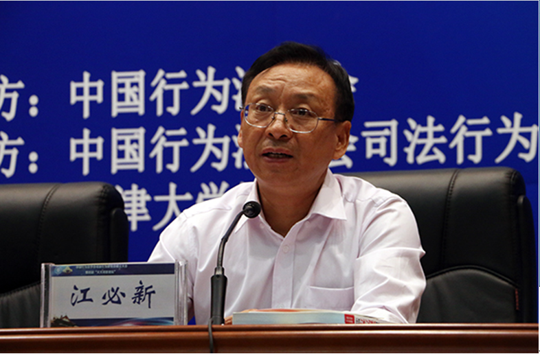 江必新会长发言强调塑造新型法律人意义重大、任务紧迫,是全面推进依法治国的必然要求,是国家治理现代化的必由之路,是建设法治工作队伍的迫切要求,是破解当下法律职业伦理危机的必然选择。他还指出了新型法律人应具备的本质特征是捍卫人类尊严、追守正义,但同时提出构建法律人新型关系的关键是各司其职、各守其位,换位思考、以礼相待,精诚协作、和而不同,尊重权利、严守规范。最后,江会长强调司法行为研究会要把塑造新型法律人、构建法律人的新型关系作为重要使命,要制度化、规范化、效能化、协同化作为立会之基、活动之要、发展之本、组织之魂。