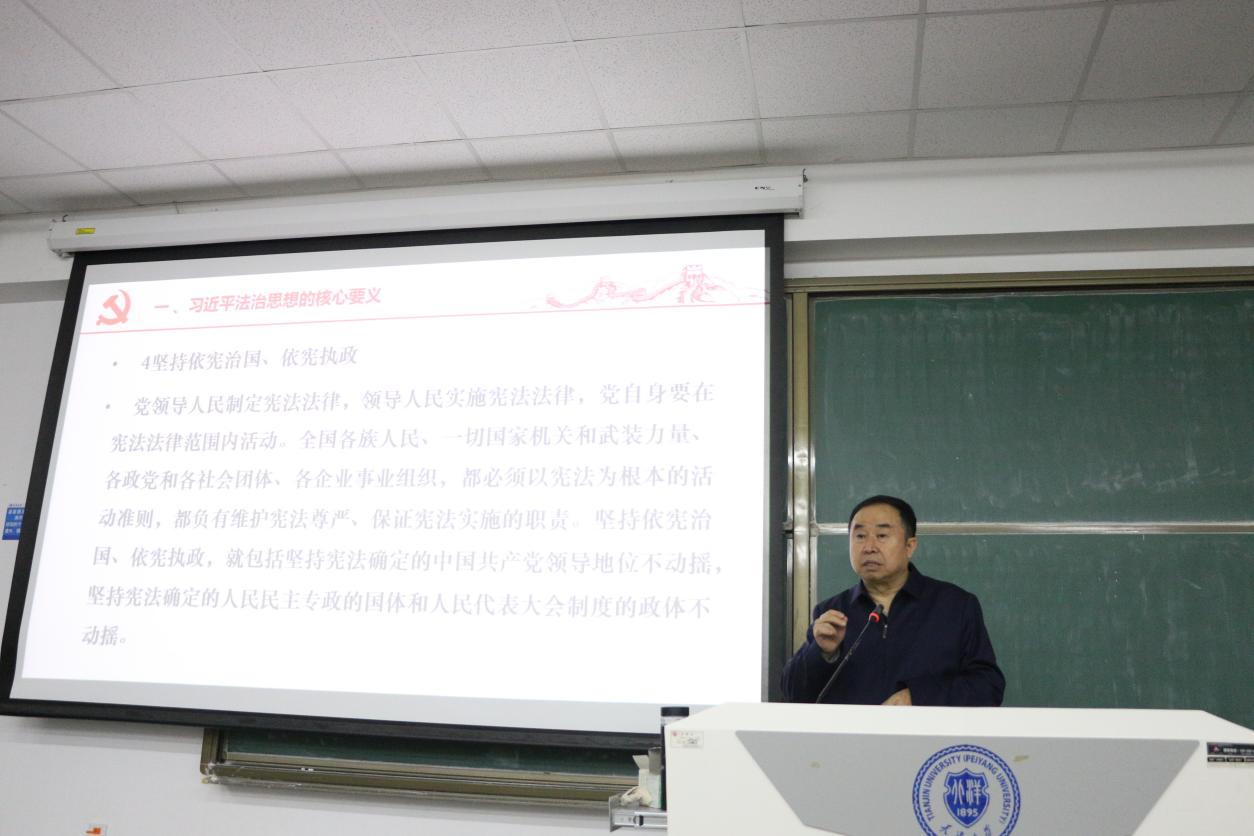 孙佑海院长从习近平法治思想的核心要义、理论渊源、形成过程及其重大意义四方面进行了讲授。他强调,习近平法治思想的形成是我国社会主义法治建设进程中具有重大现实意义和深远历史意义的大事,必须深入学习领会,抓好贯彻落实。同时也要看到习近平法治思想在实践中取得的巨大成就,增强对我国法治建设的信心。