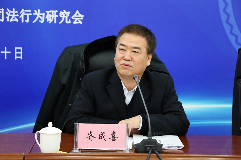 接下来由天津市知识产权局局长齐成喜致辞。齐成喜代表天津市知识产权局对研究基地的成立和理论研讨会的召开表示热烈祝贺。他在讲话中提到,过去一年,天津市的知识产权工作取得了显著进展,随之而来的新类型知识产权案件也在不断涌现。这种发展态势迫切要求我们深化知识产权保护,不断完善知识产权制度。高校因其所具备的学科基础、人才资源,应该在知识产权研究方面充分发挥智囊团的作用。齐成喜希望,天津大学知识产权法研究基地能够围绕“美丽天津”建设,紧抓“五大”战略机遇,积极服务京津冀协同发展、天津自由贸易区和国家自主创新示范区建设,开展知识产权基础理论研究、知识产权国际保护研究和知识产权实务研究,积极承担实际部门的应用研究课题,协助推动全市知识产权工作再上新台阶,为全市经济社会发展做出更大的贡献。