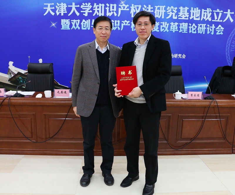 随后,天津大学副校长元英进宣读了《关于成立天津大学知识产权法研究基地的批复》:学校同意成立天津大学知识产权法研究基地,聘任李明德同志担任基地主任,俞风雷同志担任基地执行主任。希望知识产权法研究基地聚焦国家创新驱动发展的重大需求,开拓创新、扎实工作,早日建成国内高水平智库,为天津大学知识产权法学科发展,为天津大学知识产权事业的繁荣,为国家知识产权强国战略作出贡献。