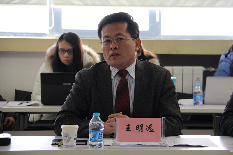 清华大学环境资源能源法学研究中心主任王明远教授作了题为“中国应对气候变化新思维新手段研究”的发言。他基于学理分析、逻辑推理和比较法探讨,结合中国参与的谈判,阐述了在前沿的谈判及内政领域,政策、立法方面应当采取哪些新思维和新手段。一是从科学性、政治性、法律性谈气候变化新思维新手段的研究。二是从共性和个性相结合来谈气候变化新思维新手段的研究。三是从内外结合、虚实结合、先后结合、统分结合的几对关系来谈应对气候变化新思维新手段的研究。四是应对气候变化的基本手段,主要有三种路径,第一是市场化,自由主义和自治主义的路径;第二是征税和政府规制,包括碳税等;第三是社区自治。