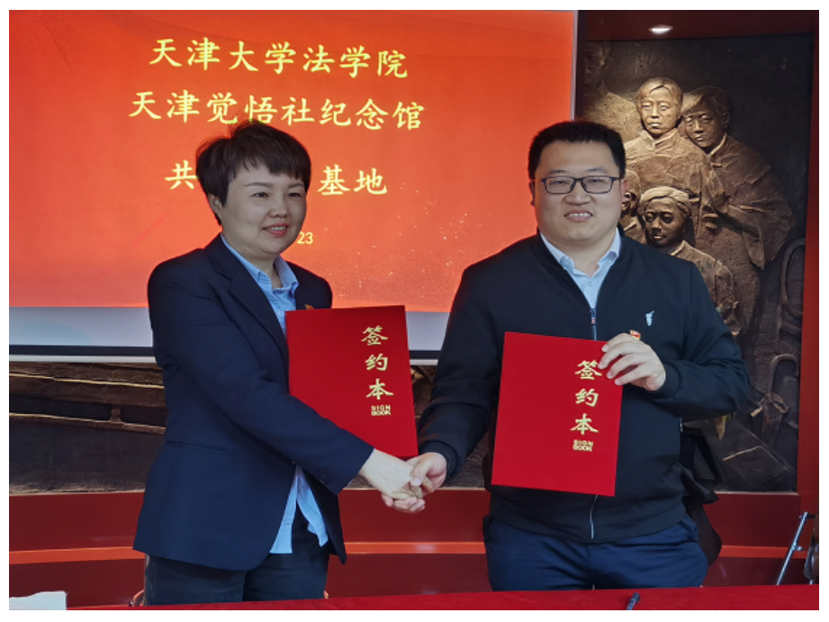 (通讯员 张丹)为更好地开展党史学习教育,4月23日下午,法学院与天津觉悟社纪念馆签订合作协议,共建爱国主义教育基地。天津河北区文旅局副局长张彪,觉悟社纪念馆馆长马媛,法学院党委书记杨欢,党委副书记、副院长张昊,以及学院师生党员代表30余人参加了活动。活动由学院团委书记曹云吉主持。