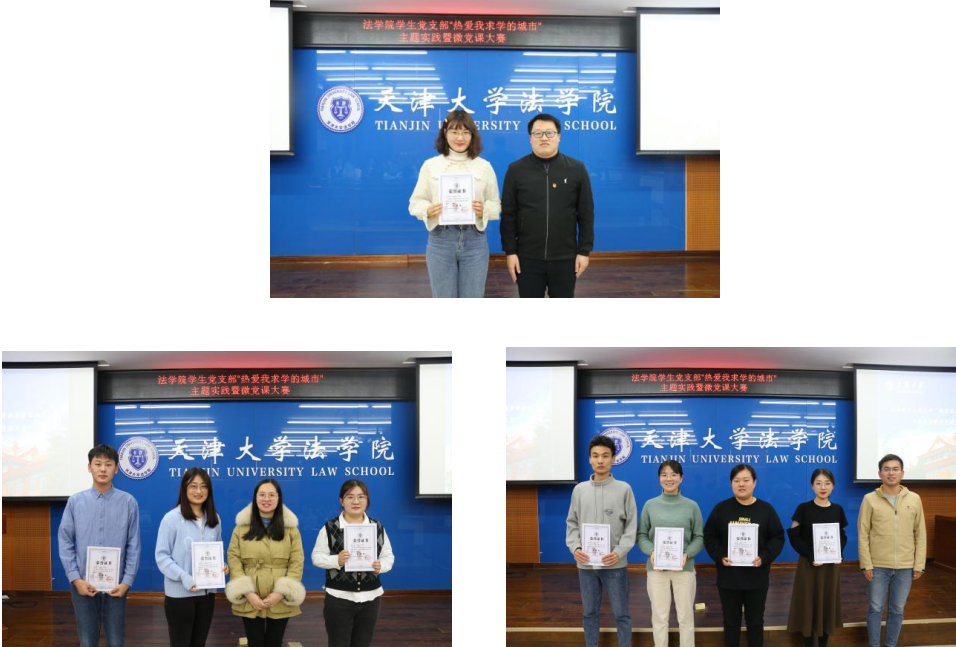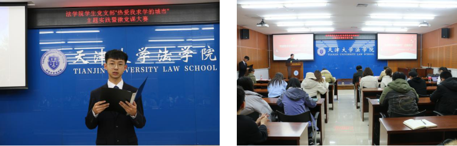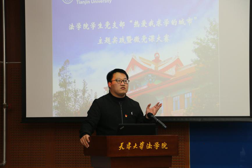 今年10-11月,法学院全体本硕博8个学生党支部陆续前往天津博物馆、平津战役纪念馆、周邓纪念馆、觉悟社纪念馆等地参观学习,寻找天津印记,热爱求学城市。此次比赛,主持人李丙兴介绍规则后,比赛正式开始,8位党支部书记、支部委员依次上台展示。各党支部的精彩讲述赢得了现场同学阵阵掌声。