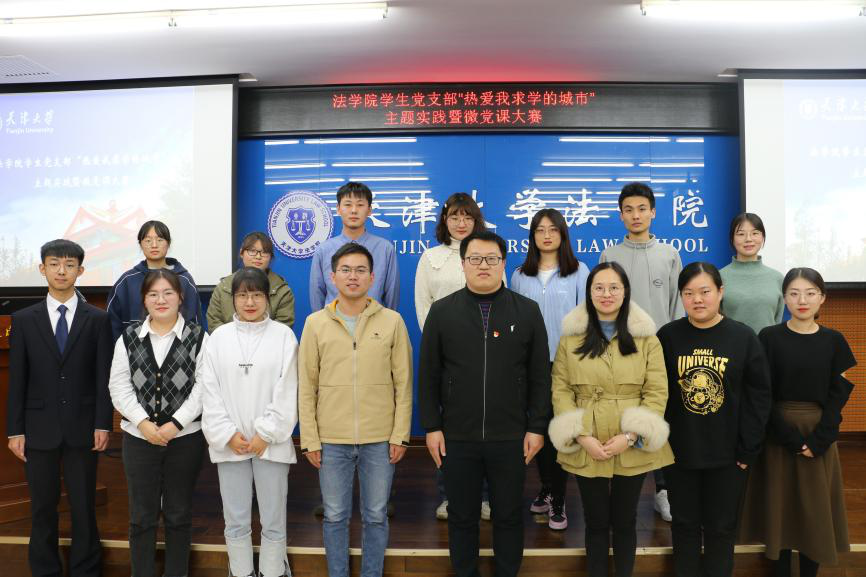 (通讯员 葛东欣 图片 周新垒、娄傲兵)为深入学习党史知识,发扬伟大建党精神,赓续红色血脉,继承红色基因,加深法学院学生对求学城市的了解和热爱,法学院举办学生党支部“热爱我求学的城市”主题实践暨微党课大赛。学院党委副书记、副院长张昊老师,学工办副主任、团委副书记张斯琦老师,本科生辅导员付常辉老师出席比赛并担任评委。
