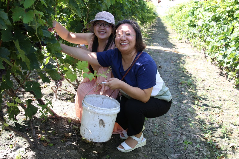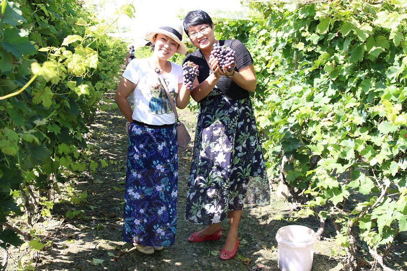 第二站是宁河葡萄种植产业园区。位于天津市东北部的宁河区是全国无公害农产品生产基地示范县,也是玫瑰香葡萄、七里海螃蟹等天津名特产的主要产区。此次老师们重点参观了位于宁河区造甲城村的百亩葡萄园,与农民交流、了解了专业合作社在新农业发展中的积极作用和农村土地流转中的相关问题,品尝了久负盛名的天津玫瑰香葡萄。
