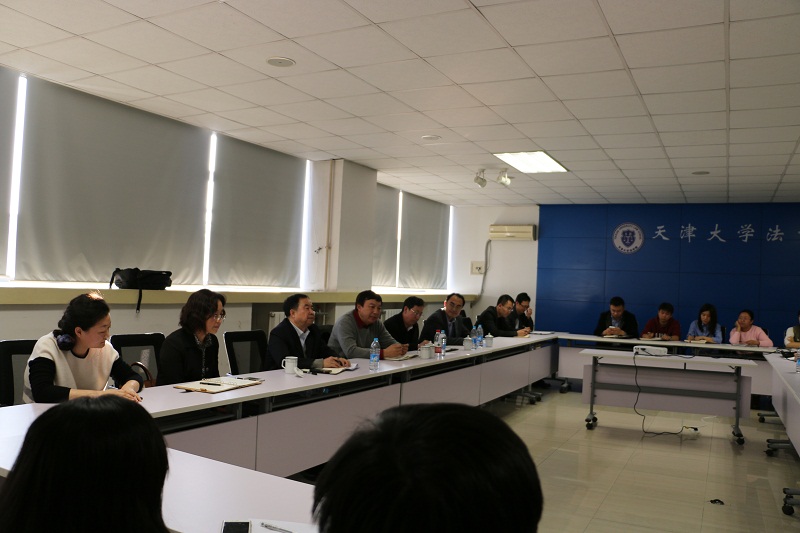 孙佑海院长首先介绍了法学院自6月17日揭牌成立以来各项工作的进展。在学科建设方面,新增刑法学、环境与资源保护法学两个二级学科硕士点,2016-2020年法学学科规划经过全院反复论证已形成初稿;在科学研究方面,学院主动聚焦国家重大需求,承担国家社科重大项目;在学术会议方面,学院连续举办了“重大事故环境风险防控和应急管理法治问题专家研讨会”、中国行为法学会司法行为研究会成立大会、“纪念罗马法走进中国”研讨会暨贾文范法学教育基金成立仪式、“我国应当制定一部什么样的民法典?---‘环境法学与民法学的对话’”等全国性会议,在国内法学界产生重要影响;在名家讲座方面,学院邀请了中国环境法学会会长蔡守秋、中国社科院法学所刑法室主任刘仁文、中国比较法研究会名誉会长刘兆兴等法学名家做客天津大学北洋名家大讲堂,为师生带来法学精彩讲座;在人才引进方面,学院积极联系、争取法学领域的名家大师,青年新秀,通过引进、兼聘等方式,汇聚法学高端智力资源。其次,孙院长提出了法学院目前发展遇到的困难和期望学校给予的支持。在学科建设方面,缺少法学一级学科博士点是制约法学院发展的关键性因素,直接导致法学院难以引进高端人才,难以产生更多、更优秀的研究成果,希望学校能够在法学一级学科博士点的建设上给予大力支持;在人才引进方面,希望学校能够给予法学院特区政策,对于理论基础厚,研究能力强的应用型人才加大引进力度;在办学空间方面,希望学校能够尽快协调落实法学院的教学科研用房。