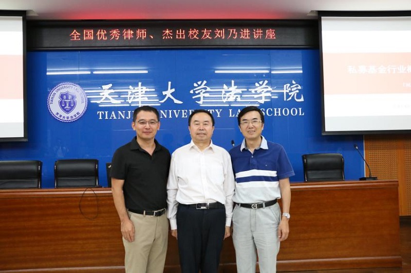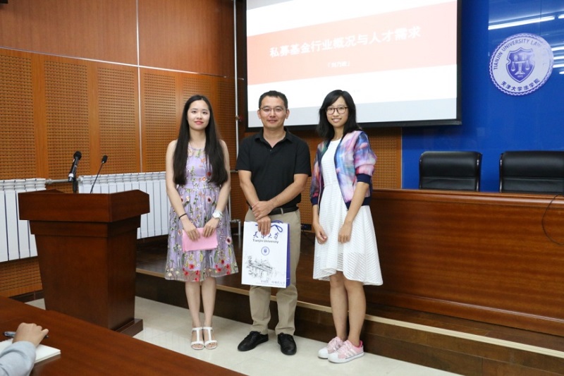 随后刘乃进律师从专业角度为大家上了生动的一课,他介绍了私募基金的基本业务模式、概念和分类,阐述了关于私募基金的发展及其当前形势,并通过聚美优品和京东方重庆项目两大经典案例完整呈现私募基金项目的基本流程与经营管理,以国家的角度展现了中国资产管理行业格局。刘乃进指出,当今中国私募基金处于发展初期,发展前景巨大,机会很多。在投资者构成上,成熟度有待提高,长期资本有待于继续培养。单只基金规模偏小,投资者风险较大。刘乃进律师对国内未来私募基金发展形势看好,并表示目前私募基金在中高层人才上有着巨大的缺口,急需人才。他对天津大学法学院学生寄予厚望,希望大家能不断丰富知识、提升素质。