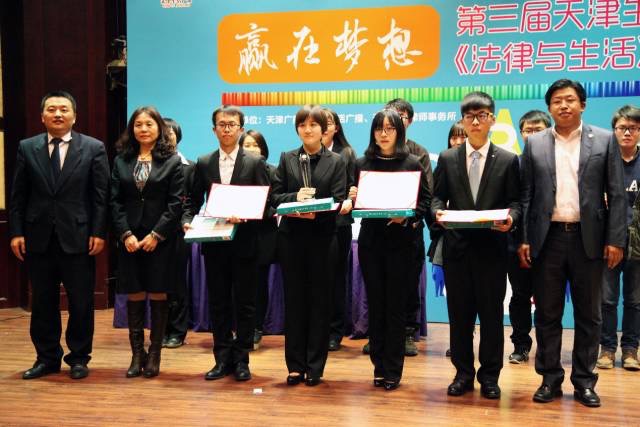 2015年12月4日,正值我国第二个国家宪法日,第三届“赢(盈)在梦想·天津生活广播《法律与生活》青年辩论赛”决赛于宪法日这天精彩打响。本场比赛对阵双方分别来自天津大学法学院代表队和天津师范大学代表队。最终,天津大学法学院代表队惜败于对手,取得了本届比赛亚军,法学院张勤同学荣获决赛最佳辩手称号。