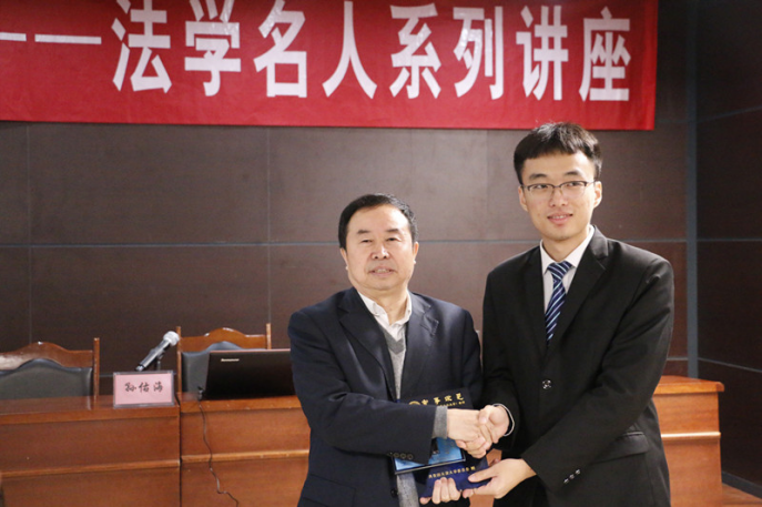 最后,博文班的学生代表向孙佑海教授赠送了“天津大学——北洋大讲堂法学名人系列讲座”的精美纪念品,表达了同学们对孙佑海教授精彩讲座的感谢之情。