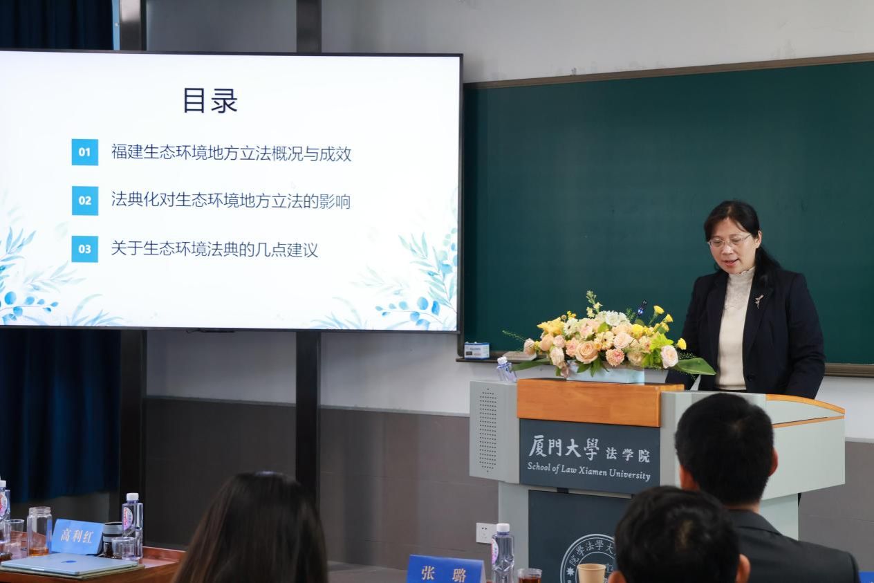 福建省人大常委会法工委吴黎静副主任作题为《法典化背景下的生态环境地方立法:以福建省为视角》的专题发言。她结合福建省生态文明试验区实践,探讨国家法典出台后地方立法面临的机遇与应对路径。