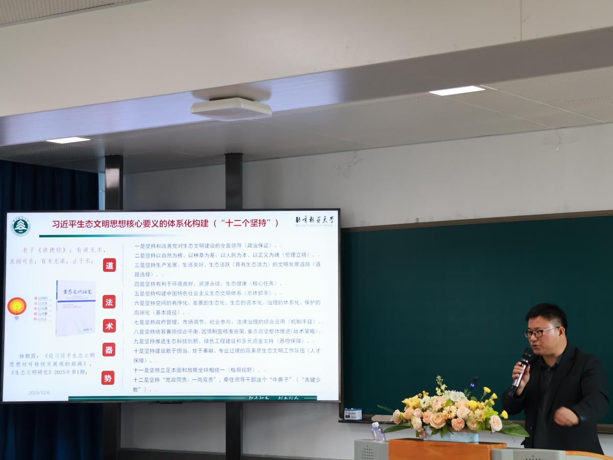 湖南师范大学法学院尤婷副教授作题为《环境法律责任体系规定之不足与完善:简评生态环境法典法律责任编》的专题发言。她分析了当前环境法律责任体系的分散与衔接问题,建议运用系统论方法在法典中整合优化。